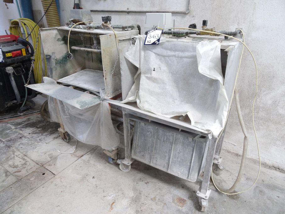 2x twin barrel powered horizontal rotary rumblers, 1200x800mm barrel