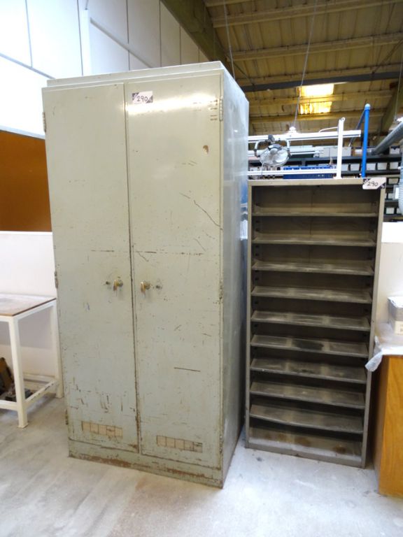 2 door multishelf lockable cupboard & multishelf rack with contents inc: spare holder, guards, lamps etc