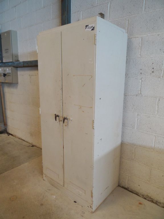 2 door storage cupboard with Qty various spares for Grun rotary kilns & spare silicon carbide firing tube in crate