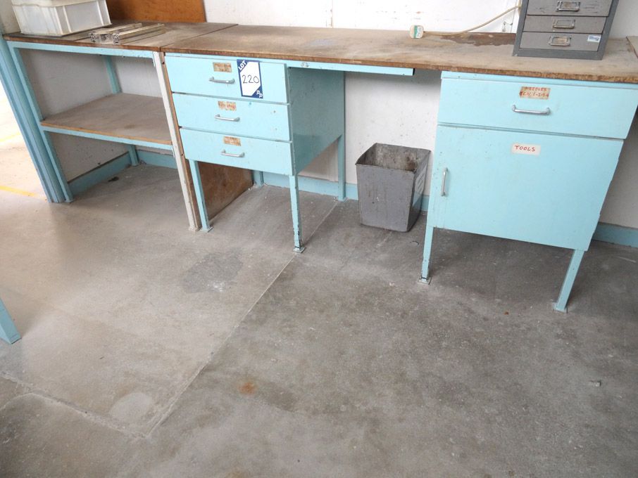1775x620mm workbench with drawers & wall mounted wooden worktop, 2800x670mm approx