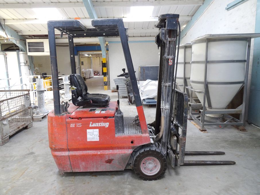 Lansing Linde E15 3 wheel electric forklift truck, 1500kg capacity, side shift (1994)