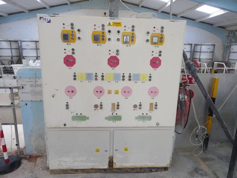 Effluent treatment with various transfer pumps, 25ft high x 8ft approx vertical sludge tank, 3x modified skips