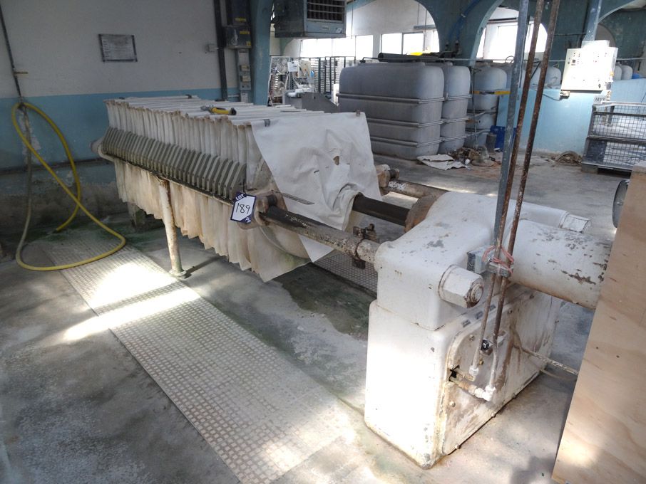 Heinrich Zeidler hydraulic slurry / filter press, 3200mm long approx, 35x plates @ 800mm diameter (1974)