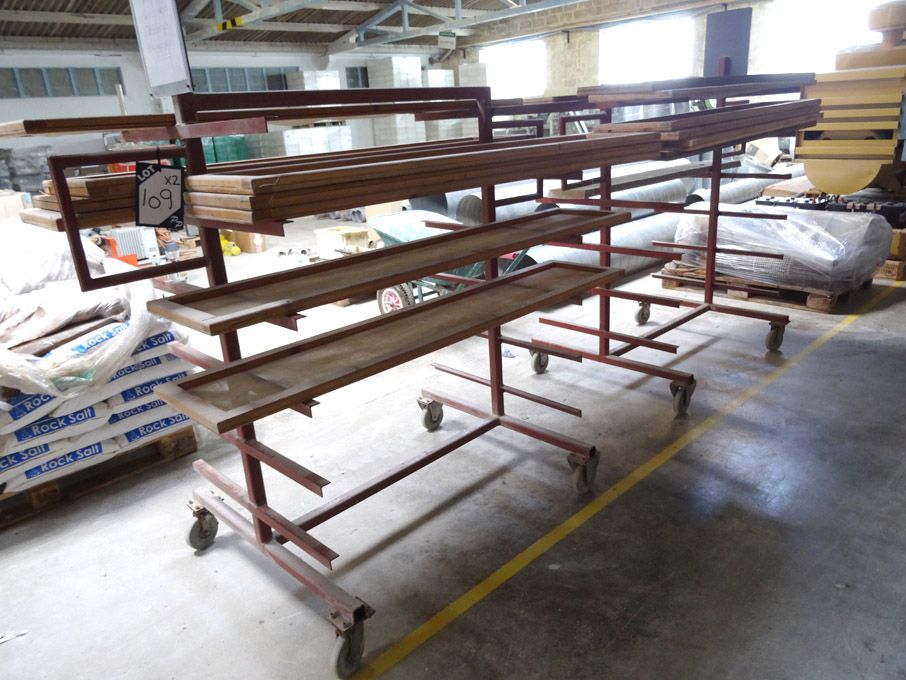 2x multishelf drying trolleys inc: wooden surround sleeves, 1600x340mm