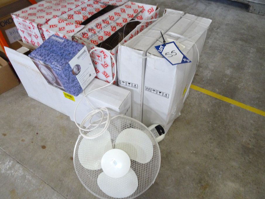 Qty various waste bins, office fans, storage cabinets, ultraviolet lights, light boxes, storage racks, skips, step ladders, safety steps, lockers, foot staplers, boxes, staple guns, various trolleys, vacuum cleaners, fire extinguishers, canteen tables, workbenches etc