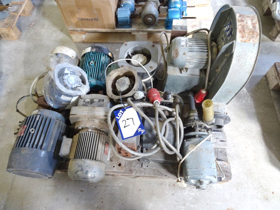 Qty various Heligear, Brock Crompton etc motors, blowers, pumps etc on pallet
