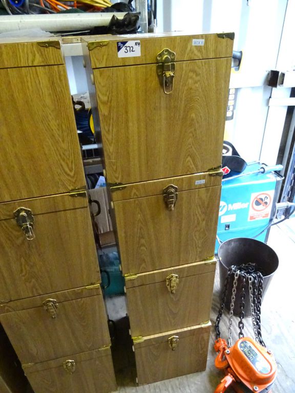 4x K&L Microwave Incorporated wooden laminated 6 compartment storage boxes, 13x13x15" approx external dimensions