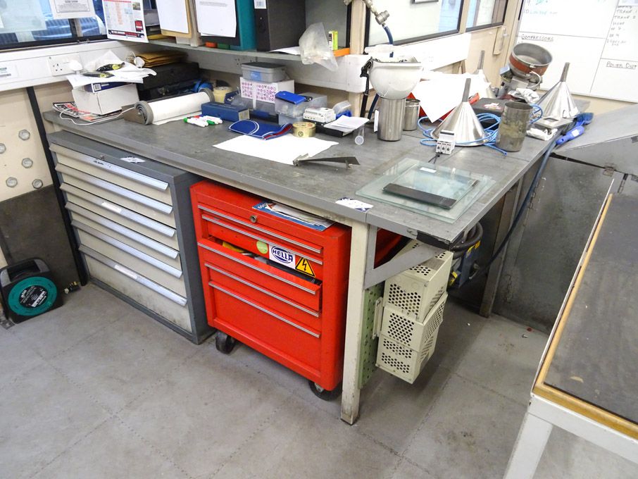 2x Welconstruct metal frame benches, 1800x900mm, 2050x2000mm 'L' shape - Lot located at: Southam, Warwickshire