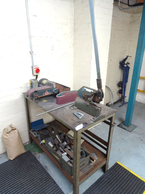 RJH Bandfacer 100mm horizontal linisher on metal table with Mubea 3/5R hand shear - Lot located at: Southam, Warwickshire
