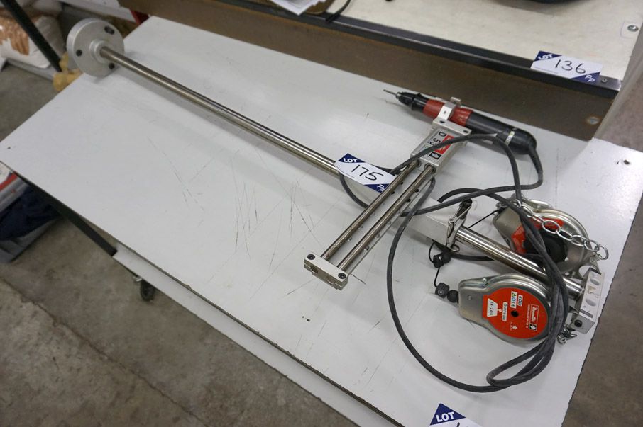2x Desoutter twin table type spring balances, 1.4 – 2.4kg capacity
