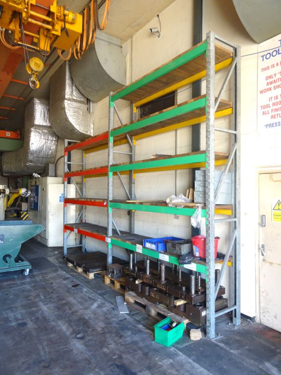 Qty various Coolie etc pallet trucks, Polstore, storage cabinets, pallet racking etc