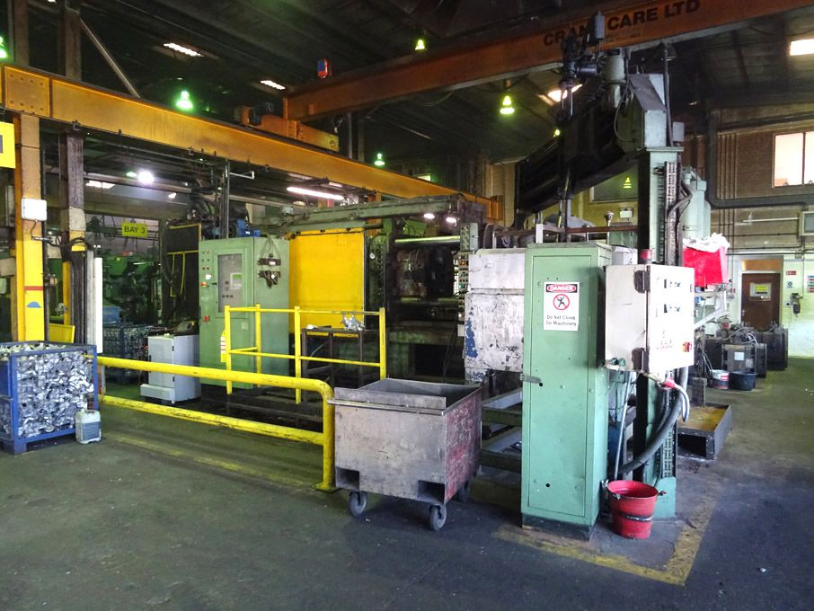 Idra type S 300 tonne cold chamber die casting machine (1975), Holimesey electric holding furnace, 680-700degC, ABB S4 6 axis robot & controller, 9860hrs (2002), STP LX-150 spray / lubricator arm (1999), Italpress PA/25 25 tonne hydraulic press, 700x520mm (1988), 8x6m approx footprint