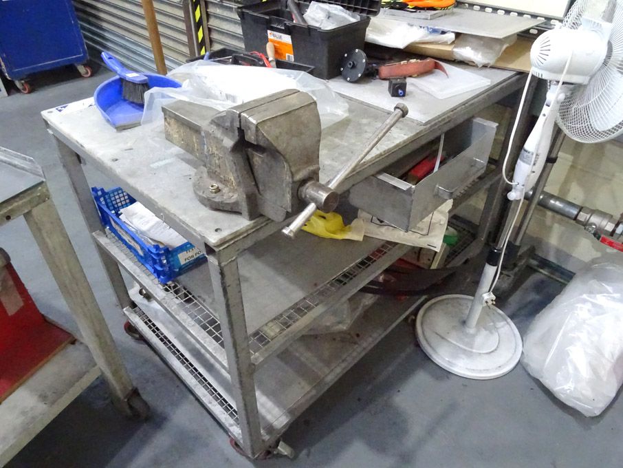 Mobile metal work bench with record bench vice, 1400x900x950mm