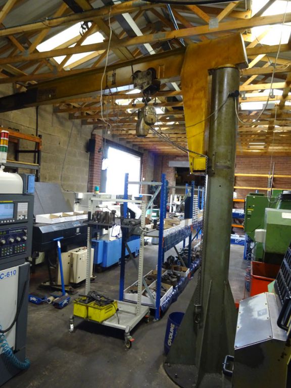 Pelloby floor mounted swing jib, 250kg SWL, 12ft span with Demag electric chain hoist, pendant control