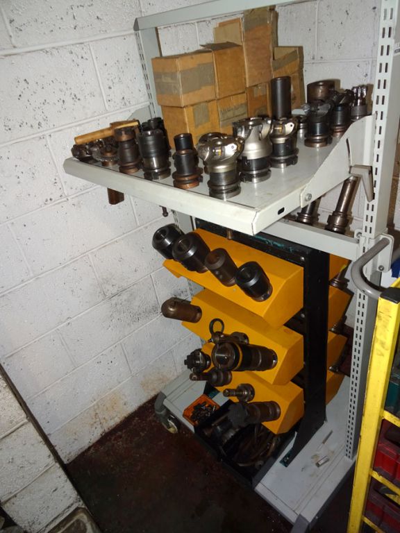 Mobile storage trolley with Qty BT40 taper tooling, milling tools, etc