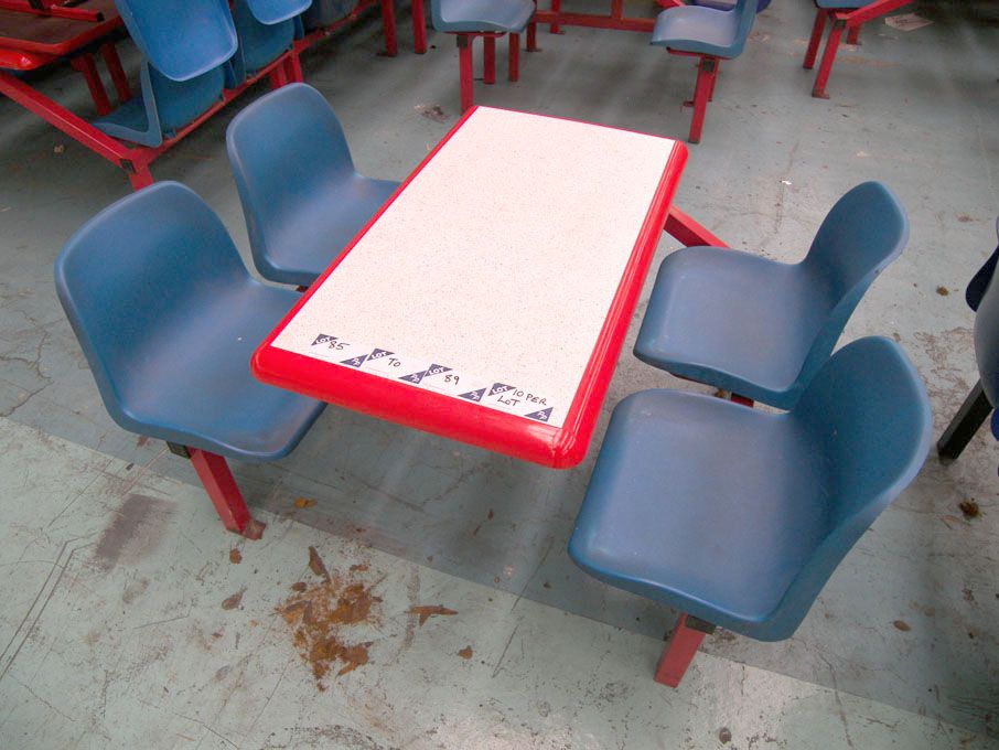 10x 4 seater canteen tables, red/blue - Located at...