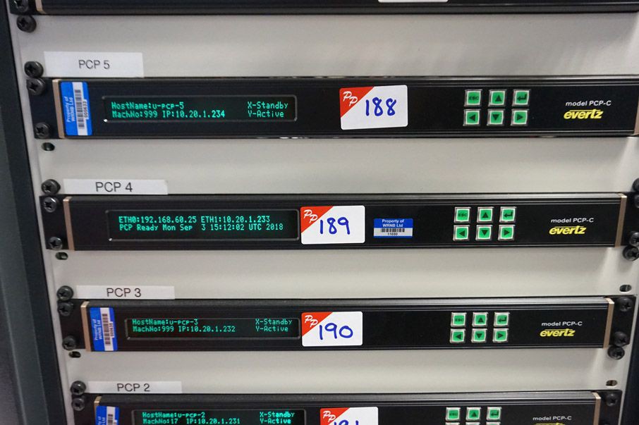 Vision 360 CCTV controller / multiplexers. Tandberg E5720 encoders. Thomson Vibe CP6000 contribution platform. Harmonic encoders. Harris FR6822+, 6800 Plus video router. Evertz PCP-C processor