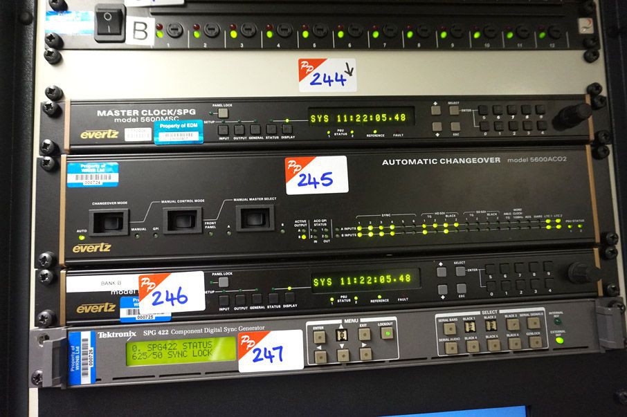 Evertz 5600MSC master clock / SPG. Evertz 5600ACO2 automatic changeover
