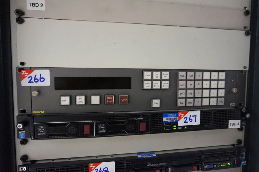 Evertz 7800FR-QT multiframe chassis. Black Magic Design Smart Video Hub 40x40 UltraHD Mixed Format Router, Evertz EQT-32x32 router. Harmonic encoders. Tandberg Remux MX5210 remultiplexer