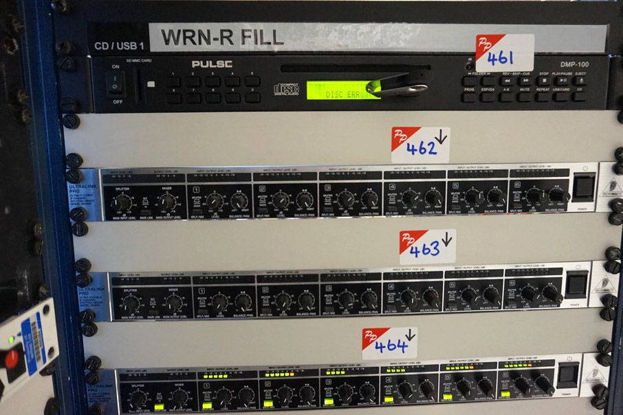 Wharton Electronics 482 master clock. Omina AX 8x1 Telos processor. Belkin Omiview Pro 16 port KVM switch. Alice Match Rack Pro interface. Behringer MX882 Ultralink Pro ultra - flexible 8 channel splitter / mixer