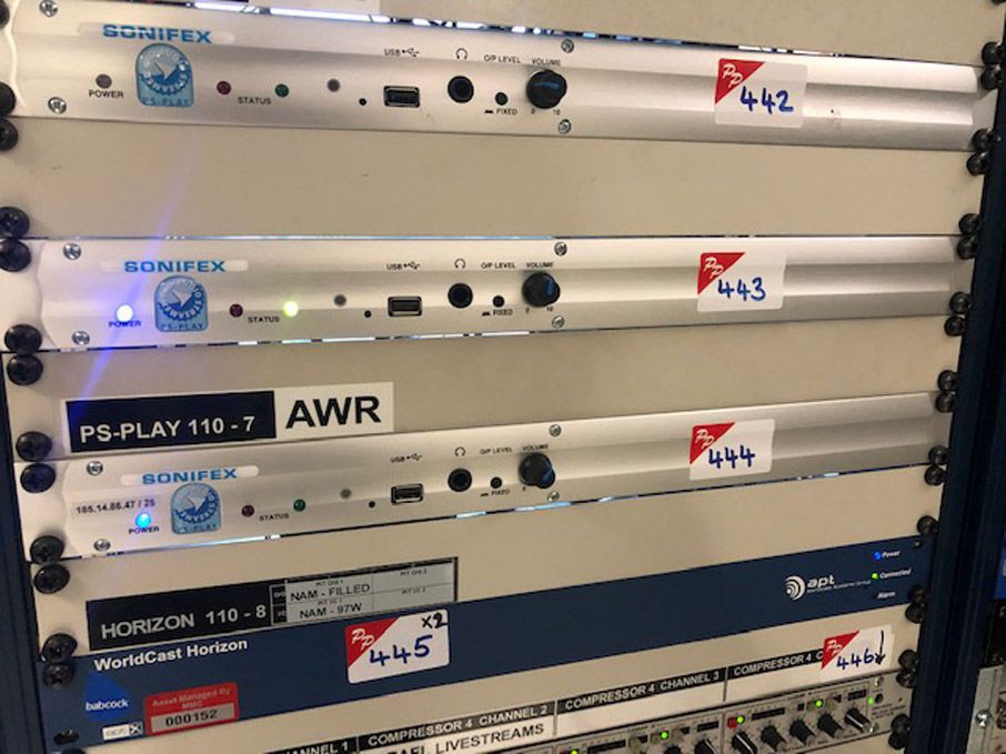 SBS flex rack modular system chassis. Rane ME15B graphic equaliser. Soniflex PS play IP-Audio streaming decoder. Audio Design Pro DAB2 professional DAB receiver. Behringer GEQ3102 graphic equaliser