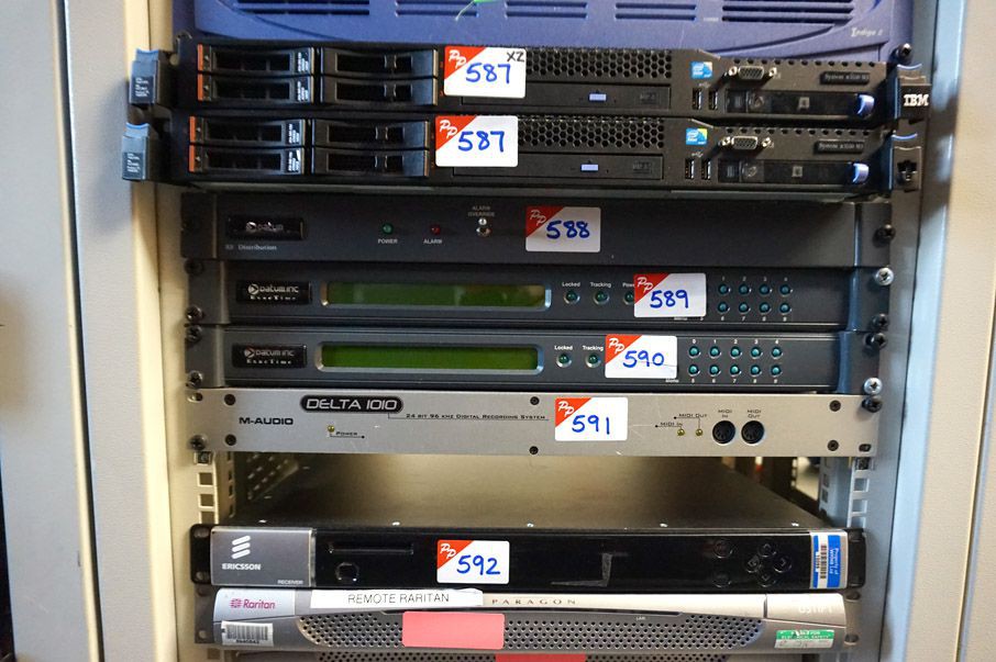 Wharton Electronics 482 master clock. Omina AX 8x1 Telos processor. Belkin Omiview Pro 16 port KVM switch. Alice Match Rack Pro interface. Behringer MX882 Ultralink Pro ultra - flexible 8 channel splitter / mixer
