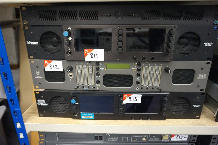 Wharton Electronics 482 master clock. Omina AX 8x1 Telos processor. Belkin Omiview Pro 16 port KVM switch. Alice Match Rack Pro interface. Behringer MX882 Ultralink Pro ultra - flexible 8 channel splitter / mixer