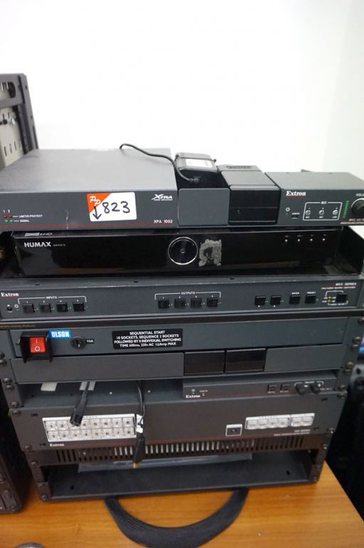 TSL AMU1-CHD audio monitoring unit. Image Server 360 systems broadcast time delay. AEQ Caddy AD & DA convertor. Eyeheight uni panel. M-Audio Delta 1010 digital recording system. Mikrotik 1200 Routerboard rackmount router. Black Magic Design control. Snell & Wilcox CVR45 standards convertor