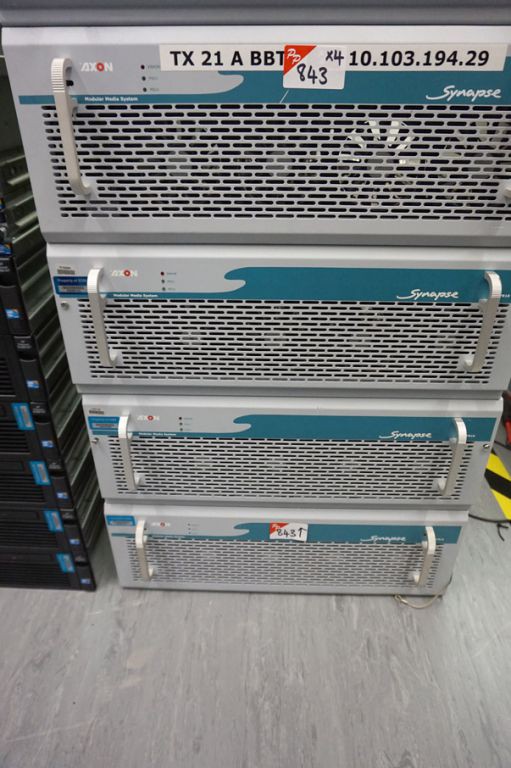 4x Axon Synapse SFR08 modular media system chassis with various plug in cards