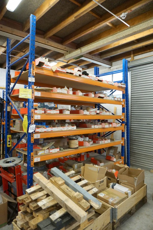 1 bay Dexion boltless pallet racking with contents inc: various fastenings etc