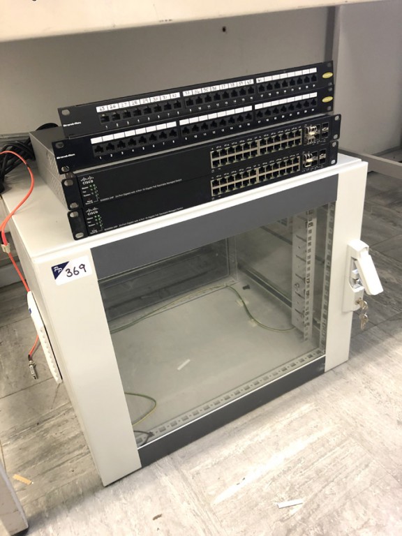 Network switch box inc: 2x Cisco SG500X-24P network switches, 2x Brand-Rex CAT6 Plus switches