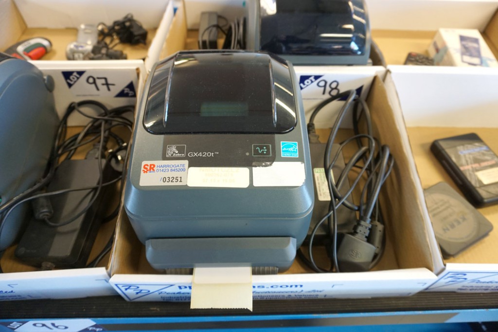 3x Zebra GX420T label printers. HP CP5225 colour laser printer. HP Laserjet P3015 laser printer