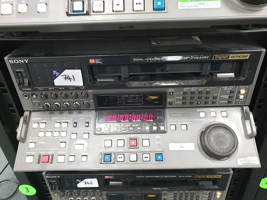 3x Sony DNW-A500P digital video cassette recorder. Evertz digital studio clock. 3x TSL freestanding 45u component racks. Verity systems 22008 802 conveyor