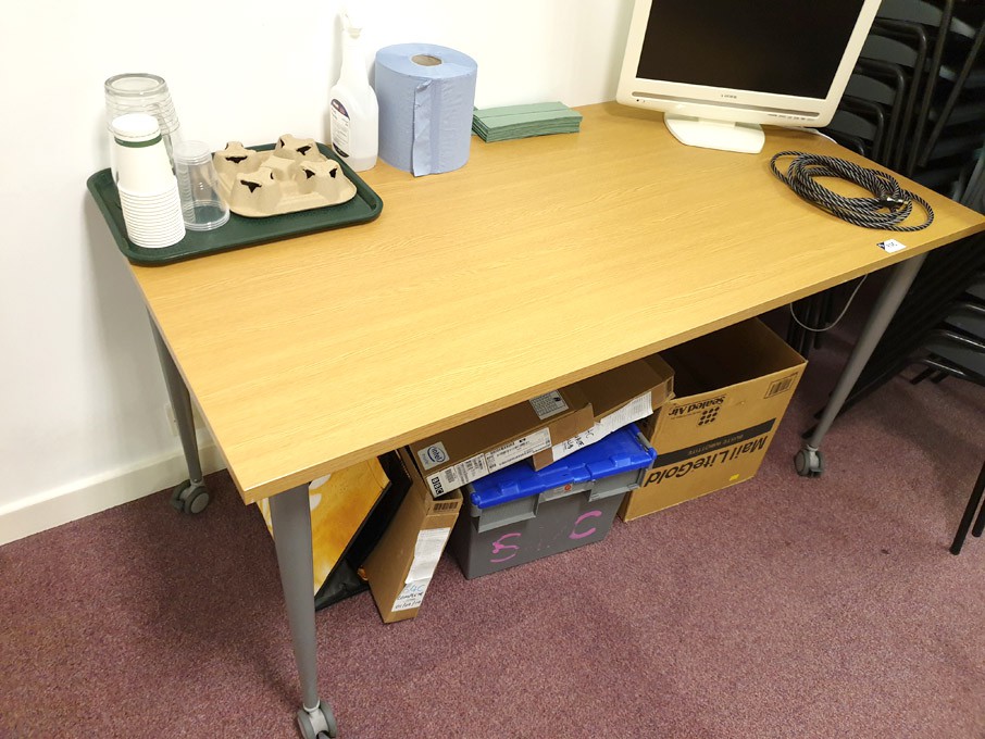 3x light oak mobile meeting tables, 1500x750mm wit...
