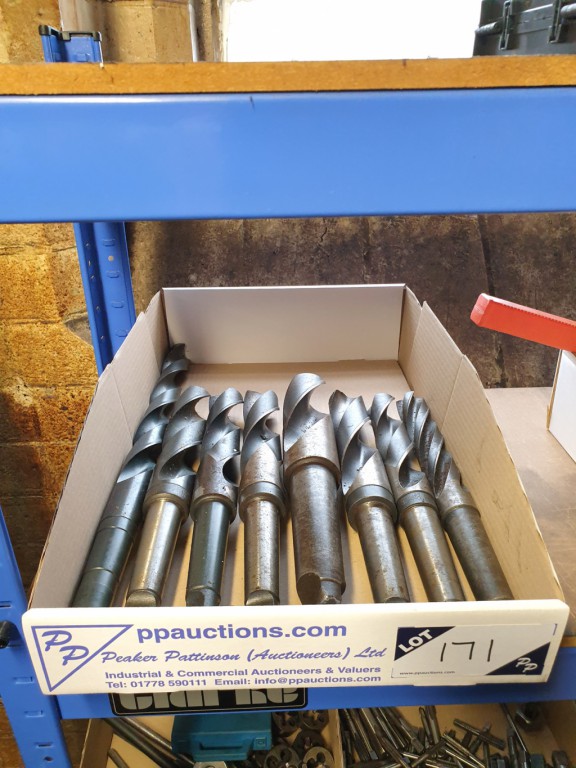 Qty various HSS taper shank twist drills to 56mm a...